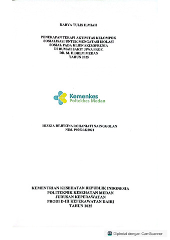 NAINGGOLAN, HIZKIA (2025) PENERAPAN AKTIVITAS TERAPI AKTIVITAS KELOMPOK SOSIALISASI UNTUK MENGATASI ISOLASI SOSIAL PADA KLIEN SKIZOFRENIA DIRUMAH SAKIT JIWA PROF.DR.M.ILDREM MEDAN TAHUN 2025. Diploma thesis, POLTEKKES KEMENKES MEDAN.