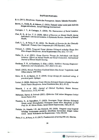 Kata kunci: Skizofrenia, isolasi sosial, terapi aktivitas kelompok, sosialisasi