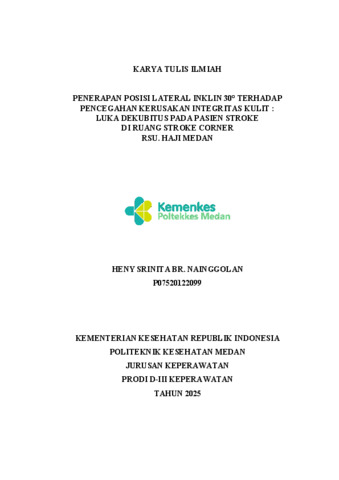 Nainggolan, Heny Srinita Br (2025) Penerapan Posisi Lateral Inklin 30° Terhadap Pencegahan Kerusakan Integritas Kulit : Luka Dekubitus Pada Pasien Stroke Di Ruang Stroke Corner Rsu. Haji Medan. Diploma thesis, Poltekkes Kemnkes Medan.