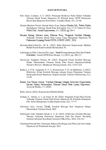 Kata Kunci: Swedish Massage, Tekanan darah, Hipertensi