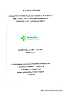 Ginting, Putri Wilda Agatha (2025) Penerapan Swedish Massage Terhadap Penurunan Tekanan Darah Pada Pasien Hipertensi Di Rumah Sakit Umum Haji Medan. Diploma thesis, Poltekkes Kemnkes Medan.