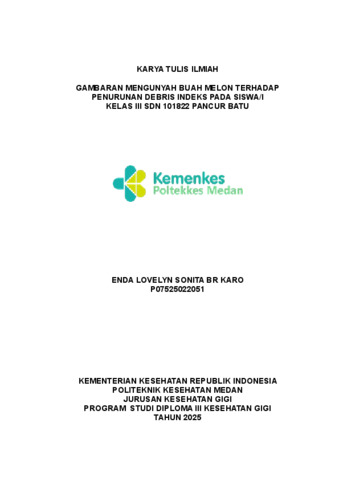 Karo, Enda Lovelyn Sonita Br (2025) Gambaran Mengunyah Buah Melon Terhadap Penurunan Debris Indeks Pada Siswa/I Kelas III SDN 101822 Pancur Batu. Diploma thesis, Poltekkes Kemenkes Medan.