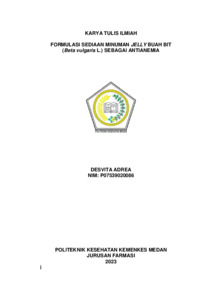 DESVITA ADREA, DESVITA ADREA (2023) FORMULASI SEDIAAN MINUMAN JELLY BUAH BIT (Beta vulgaris L.) SEBAGAI ANTIANEMIA. Diploma thesis, Poltekkes Kemenkes Medan.