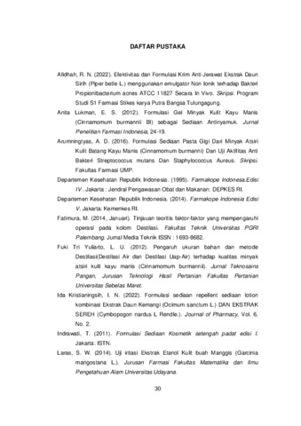 Kesimpulan dari penelitian ini adalah Krim Minyak Atsiri Kulit Kayu