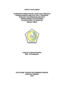BATUBARA, FADILAH ULMI BATUBARA (2023) GAMBARAN PENGETAHUAN, SIKAP DAN TINDAKAN PASIEN DIABETES MELITUS TIPE 2 TERHADAP PENYAKIT DAN PENGGUNAAN OBAT HIPERGLIKEMIA DI PUSKESMAS GLUGUR DARAT KECAMATAN MEDAN TIMUR. Diploma thesis, Poltekkes Kemenkes Medan.