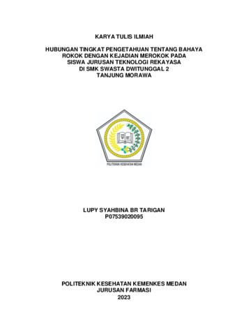 BR TARIGAN, LUPY SYAHBINA BR TARIGAN (2023) HUBUNGAN TINGKAT PENGETAHUAN TENTANG BAHAYA ROKOK DENGAN KEJADIAN MEROKOK PADA SISWA JURUSAN TEKNOLOGI REKAYASA DI SMK SWASTA DWITUNGGAL 2 TANJUNG MORAWA. Diploma thesis, Poltekkes Kemenkes Medan.
