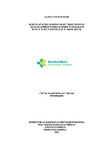 SITOHANG, CINTIA PANDUWITA (2025) HUBUNGAN EFEK SAMPING KEMOTERAPI DENGAN KUALITAS HIDUP PASIEN KANKER PAYUDARA DI RUMAH SAKIT UMUM PUSAT H. ADAM MALIK. Diploma thesis, Poltekkes Kemenkes Medan.