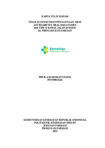 SHEILA MAHARANI DANIL, SHEILA MAHARANI DANIL (2025) INGKAT KEPATUHAN PENGGUNAAN OBAT ANTIDIABETES ORAL PADA PASIEN DM TIPE II RAWAT JALAN DI RSUD Dr. PIRNGADI KOTA MEDAN. Diploma thesis, Poltekkes Kemenkes Medan.