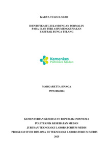 Sinaga, Margaretta (2025) IDENTIFIKASI UJI KANDUNGAN FORMALIN PADA IKAN TERI ASIN MENGGUNAKAN EKSTRAK BUNGA TELANG. Diploma thesis, Poltekkes Medan.