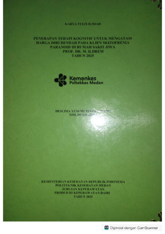 PADANG, DESLIMA (2025) PENERAPAN TERAPI KOGNITIF UNTUK MENGATASI HARGA DIRI RENDAH PADA KLIEN SKIZOFRENIA PARANOID DI RUMAH SAKIT JIWA PROF. DR. M. ILDREM MEDAN TAHUN 2025. Diploma thesis, POLTEKKES KEMENKES MEDAN.