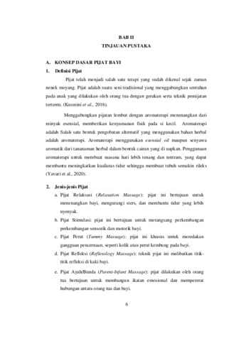 Metode Studi Kasus: Penelitian ini menggunakan pendekatan studi kasus deskriptif dengan dua subjek bayi baru lahir yang mengalami gangguan pola tidur. Intervensi pijat bayi dengan aromaterapi esensial oil lavender dilakukan selama 3 hari dengan durasi 15 menit per hari. Data dikumpulkan melalui kuesioner, wawancara, dan pemeriksaan fisik, lalu dianalisis secara naratif.