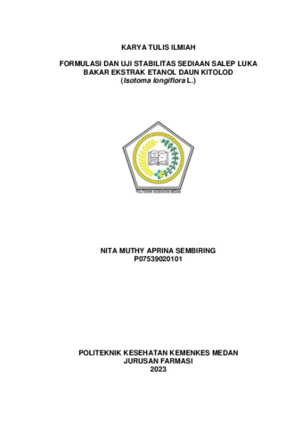 SEMBIRING, NITA MUTHY APRINA SEMBIRING (2023) FORMULASI DAN UJI STABILITAS SEDIAAN SALEP LUKA BAKAR EKSTRAK ETANOL DAUN KITOLOD (Isotoma longiflora L.). Diploma thesis, Poltekkes Kemenkes Medan.