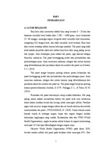 Latar Belakang: Bayi baru lahir sangat rentan terhadap infeksi, terutama pada area tali pusat yang menjadi salah satu jalur masuk utama mikroorganisme. Infeksi tali pusat masih menjadi salah satu penyebab kematian neonatus di berbagai negara berkembang, termasuk Indonesia. Perawatan tali pusat secara tepat dan sesuai standar merupakan upaya penting dalam mencegah infeksi.