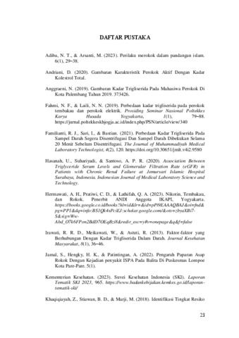 Siregar, Siti Aisyah (2025) GAMBARAN KADAR TRIGLISERIDA PADA PEROKOK AKTIF USIA DI ATAS 30 TAHUN. Diploma thesis, Poltekkes Medan.