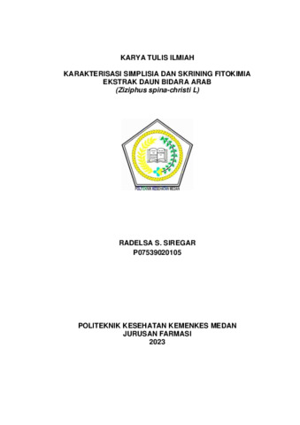 SIREGAR, RADELSA S. SIREGAR (2023) KARAKTERISASI SIMPLISIA DAN SKRINING FITOKIMIA EKSTRAK DAUN BIDARA ARAB (Ziziphus spina-christi L). Diploma thesis, Poltekkes Kemenkes Medan.