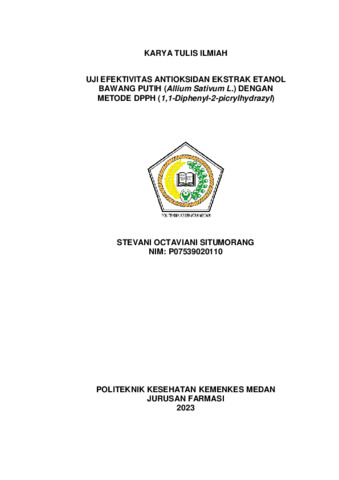 SITUMORANG, STEVANI OCTAVIANI SITUMORANG (2023) UJI EFEKTIVITAS ANTIOKSIDAN EKSTRAK ETANOL BAWANG PUTIH (Allium Sativum L.) DENGAN METODE DPPH (1,1-Diphenyl-2-picrylhydrazyl). Diploma thesis, Poltekkes Kemenkes Medan.