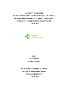 Humairoh, Humairoh (2024) Asuhan Kebidanan Pada Ny. P Masa Hamil Sampai Dengan Masa Nifas Dan Pelayanan Keluarga Berencana Di Klinik Pratama Sunartik Tahun 2024. Diploma thesis, Poltekkes Kemenkes Medan.