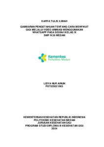 Ainun, Lidya Nur (2024) Gambaran Pengetahuan Tentang Cara Menyikat Gigi Melalui Video Animasi Menggunakan Whatsapp Pada Siswa/I Kelas IX SMP N 36 Medan. Diploma thesis, Poltekkes Kemenkes Medan.