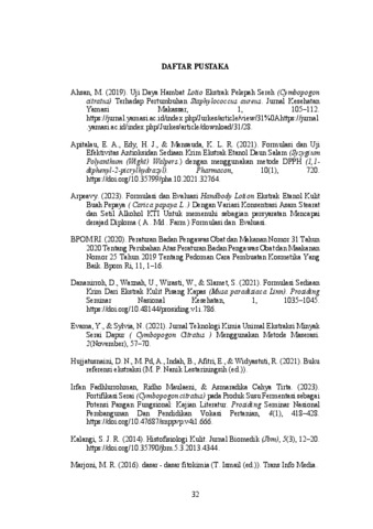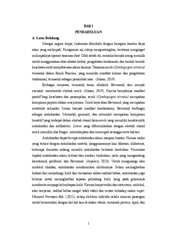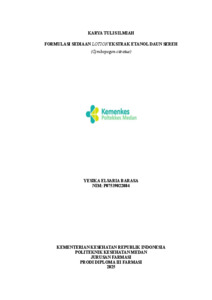 BARASA, YESIKA ELSARIA (2025) FORMULASI SEDIAAN LOTION EKSTRAK ETANOL DAUN SEREH (Cymbopogon citratus). Diploma thesis, Poltekkes Kemenkes Medan.