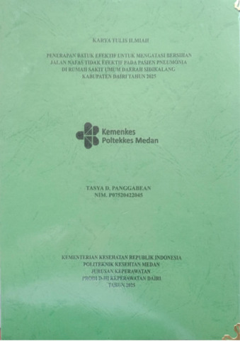 PANGGABEAN, TASYA (2025) PENERAPAN BATUK EFEKTIF UNTUK MENGATASI BERSIHAN JALAN NAFAS TIDAK EFEKTIF PADA PASIEN PNEUMONIA DI RUMAH SAKIT UMUM DAERAH SIDIKALANG KABUPATEN DAIRI TAHUN 2025. Diploma thesis, POLTEKKES KEMENKES MEDAN.