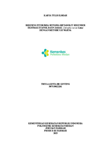 AGINTA, TRYA (2025) SKRINING FITOKIMIA SENYAWA METABOLIT SEKUNDER EKSTRAK ETANOL DAUN JARAK (Jatropha curcas Linn) DENGAN METODE UJI WARNA. Diploma thesis, Poltekkes Kemenkes Medan.