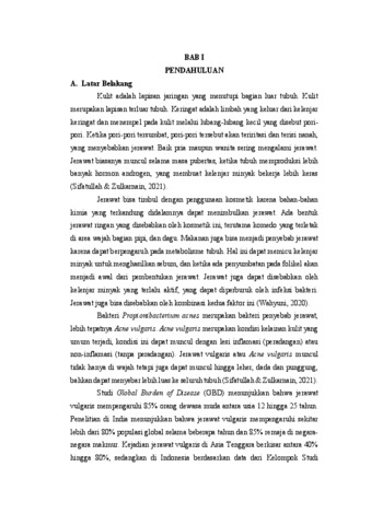 Jerawat (Acne vulgaris) merupakan masalah kulit yang umum terjadi akibat infeksi bakteri Propionibacterium acnes. Penggunaan antibiotik sintetis seperti clindamycin dapat menimbulkan resistensi, sehingga diperlukan alternatif alami yang aman dan efektif. Daun kelor (Moringa oleifera) mengandung senyawa aktif seperti flavonoid, tanin, dan alkaloid yang memiliki potensi sebagai antibakteri. Penelitian ini bertujuan untuk mengetahui efektivitas antibakteri ekstrak etanol daun kelor terhadap P. acnes serta menentukan konsentrasi yang paling efektif sebagai antibakteri.
