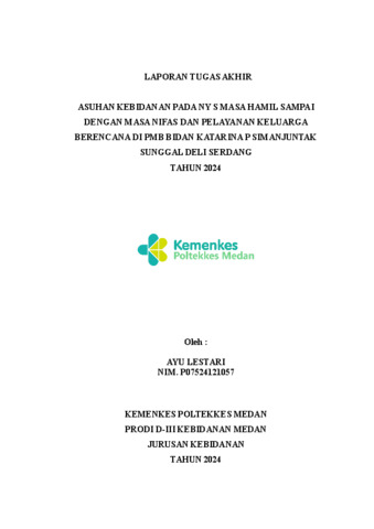 Lestari, Ayu (2024) Asuhan Kebidanan Pada Ny S Masa Hamil Sampai Dengan Masa Nifas Dan Pelayanan Keluarga Berencana Di Pmb Katarina P Simanjuntak, S.Keb,Bd Tahun 2024. Diploma thesis, Poltekkes Kemenkes Medan.