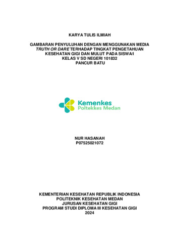 Hasanah, Nur (2024) Gambaran Penyuluhan Dengan Menggunakan Media Truth Or Dare Terhadap Tingkat Pengetahuan Kesehatan Gigi Dan Mulut Pada Siswa/I Kelas V Sd Negeri 101832 Pancur Batu. Diploma thesis, Poltekkes Kemenkes Medan.