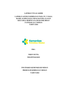 Mutia, Niken (2024) Asuhan Kebidanan Pada Ny. N Masa Hamil Sampai Dengan Masa Nifas Dan Pelayanan Keluarga Berencana Di Klinik Fatimah Ali 2 Tahun 2024. Diploma thesis, Poltekkes Kemenkes Medan.