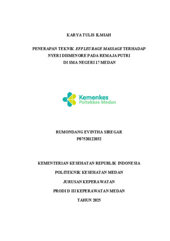 Siregar, Rumondang Evintha (2025) Penerapan Teknik Effleurage massage Terhadap Nyeri Dismenore Pada Remaja Putri di SMA Negeri 17 Medan. Diploma thesis, Poltekkes Kemnkes Medan.