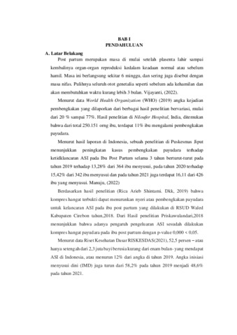 Kata Kunci: Kompres Hangat, ASI, Ibu Post Partum,Kelancaran Pengeluaran ASI.