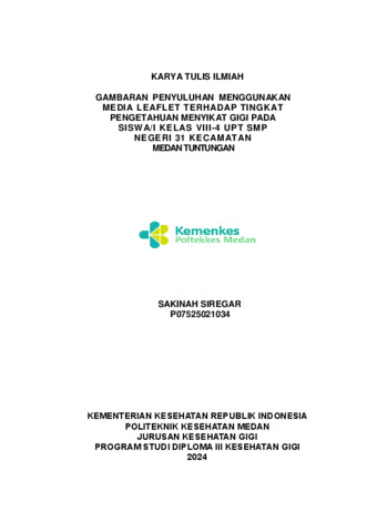 Siregar, Sakinah (2024) Gambaran Penyuluhan Menggunakan Media Leaflet Terhadap Tingkat Pengetahuan Menyikat Gigi Pada Siswa/I Kelas VIII-4 UPT SMP Negeri 31 Kecamatan Medan Tuntungan. Diploma thesis, Poltekkes Kemenkes Medan.