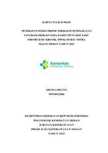 Delvia,, Melina (2025) Penerapan Posisi Tripod Terhadap Peningkatan Saturasi Oksigen Pada Pasien Penyakit Paru Obstruktif Kronik (Ppok) Di Rsu Mitra Sejati Medan Tahun 2025. Diploma thesis, Poltekkes Kemnkes Medan.