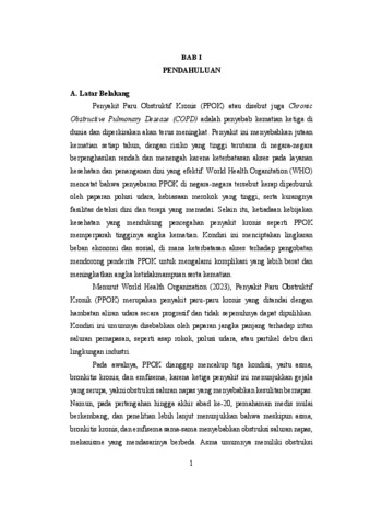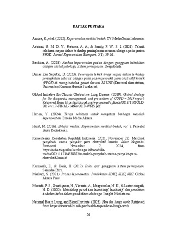 Penyakit Paru Obstruktif Kronis (PPOK) merupakan salah satu penyebab utama kematian di dunia, khususnya di negara berkembang. Gangguan pertukaran gas seperti sesak napas, penurunan saturasi oksigen dan penggunaan otot bantu napas sering dialami pasien PPOK dan dapat menurunkan kualitas hidup. Teknik relaksasi napas dalam sebagai intervensi non-farmakologis bertujuan memperlambat napas, meningkatkan ventilasi paru dan memperbaiki saturasi oksigen.