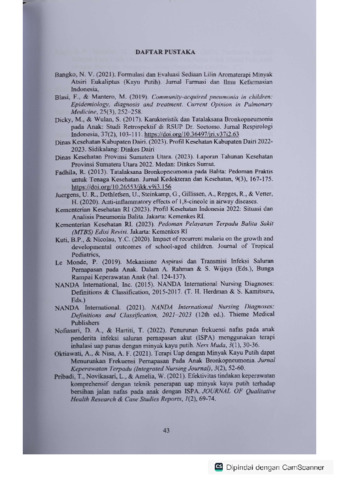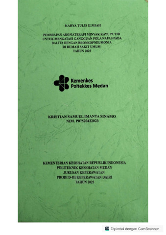 SINAMO, KRISTIAN SAMUEL (2025) PENERAPAN AROMATERAPI MINYAK KAYU PUTIH UNTUK MENGATASI GANGGUAN POLA NAFAS PADA BALITA DENGAN BRONKOPNEUMONIA DI RUMAH SAKIT UMUM TAHUN 2025. Diploma thesis, POLTEKKES KEMENKES MEDAN.