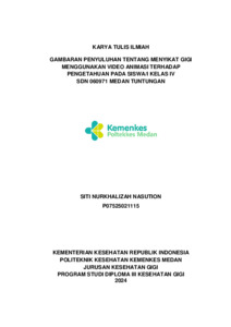 Nasution, Siti Nurkhalizah (2024) Gambaran penyuluhan tentang menyikat gigi menggunakan video animasi terhadap pengetahuan pada siswa/i kelas IV SDN 060971 Medan Tuntungan. Diploma thesis, Poltekkes Kemenkes Medan.