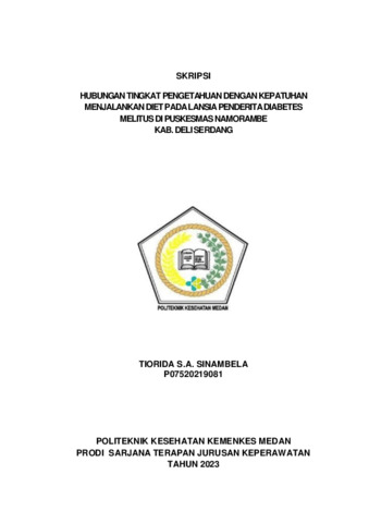 Sinambela, Tiorida S.A. (2024) Hubungan Tingkat Pengetahuan Dengan Kepatuhan Menjalankan Diet Pada Lansia Penderita Diabetes Melitus Di Puskesmas Namorambe Kab. Deli Serdang. Diploma thesis, Poltekkes Kemnkes Medan.