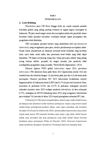 Tuberkulosis (TB) paru merupakan salah satu penyakit infeksi yang menyerang sistem pernapasan dan masih menjadi masalah kesehatan utama di indonesia. Salah satu masalah keperawatan yang sering muncul pada pasien TB Paru adalah bersihan jalan napas tidak efektif akibat akumulasi sekret. Clapping dan Vibrating merupakan teknik fisioterapi dada yang bertujuan membantu pengeluaran sekret dan memperbaiki ventilasi paru.