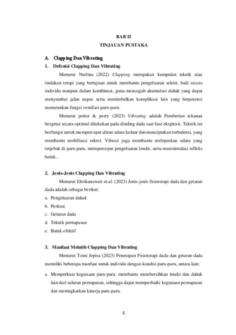 Metode: Penelitian ini menggunakan desain deskriptif dengan pendekatan observasional pada dua TB Paru dengan bersihan jalan napas tidak efektif. Intervensi berupa clapping dan vibrating diberikan selama 7 hari berturut-turut dengan frekuensi 2 kali sehari pagi dan sore. Data dikumpukan melalui kuesioner klinis dan instrumen penilaian bersihan jalan napas tidak efektif.