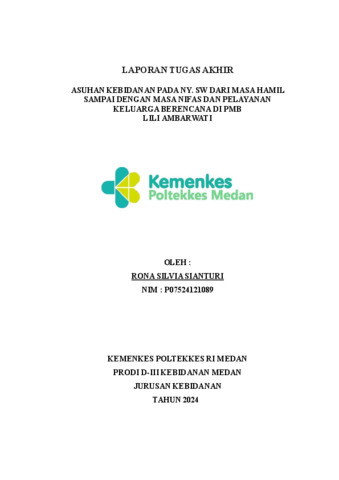 Sianturi, Rona Silvirra (2024) Asuhan Kebidanan Pada Ny. Sw Dari Masa Hamil Sampai Dengan Masa Nifas Dan Pelayanan Keluarga Berencana Di Pmb Lili Ambarwati. Diploma thesis, Poltekkes Kemenkes Medan.