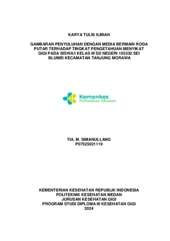 Simanullang, Tia M (2024) Gambaran Penyuluhan Dengan Media Bermain Roda Putar Terhadap Tingkat Pengetahuan Menyikat Gigi Pada Siswa/i Kelas III SD Negeri 105332 Sei Blumei Kecamatan Tanjung Morawa. Diploma thesis, Poltekkes Kemenkes Medan.