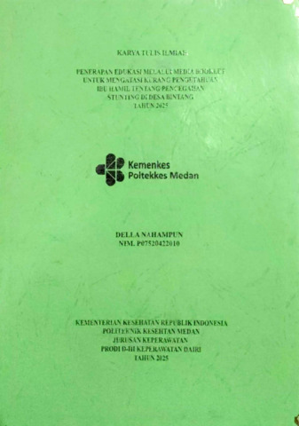 NAHAMPUN, DELLA SASKIA (2025) PENERAPAN EDUKASI MELALUI MEDIA BOOKLET UNTUK MENGATASI KURANG PENGETAHUAN IBU HAMIL TENTANG PENCEGAHAN STUNTING DI DESA BINTANG TAHUN 2025. Diploma thesis, POLTEKKES KEMENKES MEDAN.