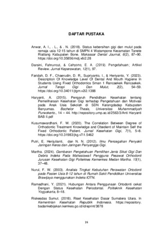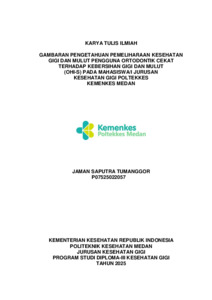 Tumanggor, Jaman Saputra Tumanggor (2025) Gambaran Pengetahuan Pemeliharaan Kesehatan Gigi Dan Mulut Pengguna ortodontik Cekat Terhadap Kebersihan Gigi Dan Mulut (OHI-S) Pada Mahasiswa/I Jurusan Kesehatan Gigi Poltekkes Kemenkes Medan. Diploma thesis, Poltekkes Kemenkes Medan.