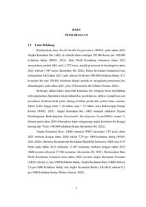 Asuhan kebidanan pada ibu dan bayi yang dilakukan secara berkesinambungan menjadi prioritas utama pemerintah dalam menurunkan Angka Kematian Ibu (AKI) dan Angka Kematian Bayi (AKB) yang merupakan indikator tujuan pembangunan berkelanjutan. Dengan asuhan yang berkualitas yang dimulai sejak masa mempersiapkan kehamilan, hamil, bersalin, nifas, bayi baru lahir dan pelayanan keluarga berencana.