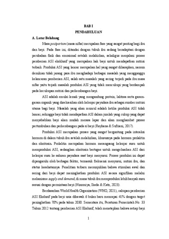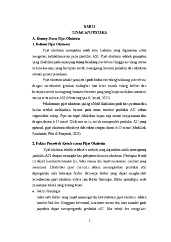 Masa postpartum (masa nifas) merupakan periode penting bagi ibu dan bayi, di mana tubuh ibu beradaptasi dengan berbagai perubahan fisik dan emosional. Pada fase ini, pemberian ASI eksklusif menjadi prioritas utama demi pemenuhan nutrisi optimal bagi bayi. Namun, tidak jarang ibu postpartum mengalami hambatan dalam produksi ASI yang kurang lancar. Pijat oksitosin merupakan salah satu intervensi non-farmakologis untuk mengatasi masalah produksi ASI.