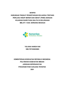 Handayani, Yuliana (2024) Hubungan Tingkat Pengetahuan Keluarga Tentang Perilaku Hidup Bersih Dan Sehat Dengan Kejadian Diare Pada Balita Di Kelurahan Melati 1 Kab. Serdang Bedagai. Diploma thesis, Poltekkes Kemnkes Medan.
