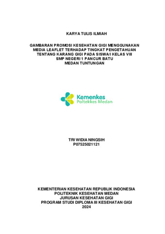 Ningsih, Tri Widia (2024) Gambaran Promosi Kesehatan Gigi Menggunakan Media Leaflet Terhadap Tingkat Pengetahuan Tentang Karang Gigi Pada Siswa/i Kelas VIII SMP Negeri 1 Pancur Batu Medan Tuntungan. Diploma thesis, Poltekkes Kemenkes Medan.
