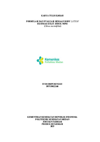 OMPUSUNGGU, IYOS (2025) FORMULASI DAN EVALUASI SEDIAAN BODY LOTION EKSTRAK KULIT JERUK NIPIS (Citrus aurantifolia). Diploma thesis, Poltekkes Kemenkes Medan.
