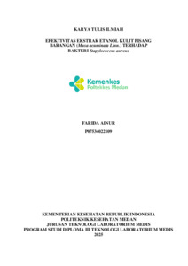 Farida, Ainur (2025) EFEKTIVITAS EKSTRAK ETANOL KULIT PISANG BARANGAN (Musa acuminata Linn.) TERHADAP BAKTERI Stapylococcus aureus. Diploma thesis, Poltekkes Medan.