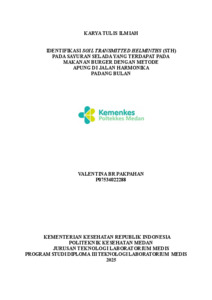 Pakpahan, Valentina (2025) IDENTIFIKASI SOIL TRANSMITTED HELMINTHS (STH) PADA SAYURAN SELADA YANG TERDAPAT PADA MAKANAN BURGER DENGAN METODE APUNG DI JALAN HARMONIKA PADANG BULAN. Diploma thesis, Poltekkes Medan.